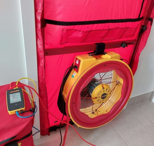 Ce test consiste à créer une dépression dans le logement à l’aide d’un ventilateur et à mesurer la quantité d’air qui entre par les fuites. Il permet de quantifier et localiser précisément les infiltrations d’air.