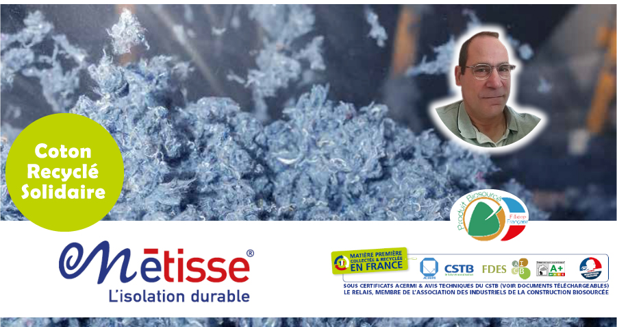 MÉTISSE majoritairement en textiles coton issus d’un circuit de collecte – tri de ~ 500 Km, répond aux conforts été/hiver en limitant les consommations énergétiques des bâtiments. De plus sa fabrication est peu énergivore.